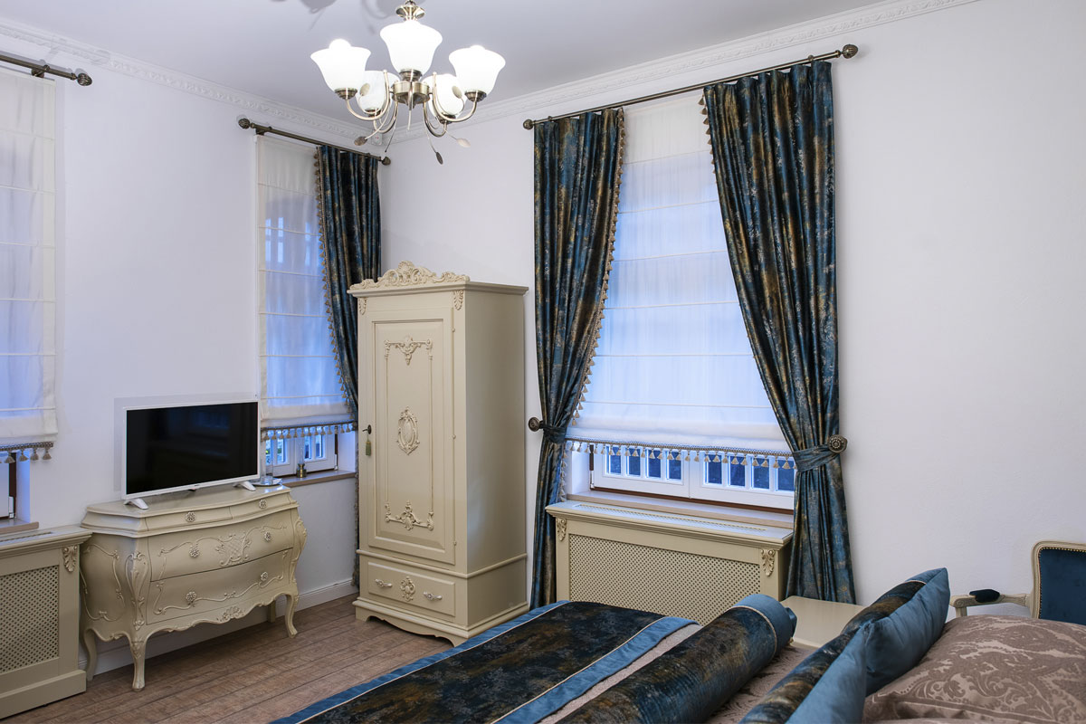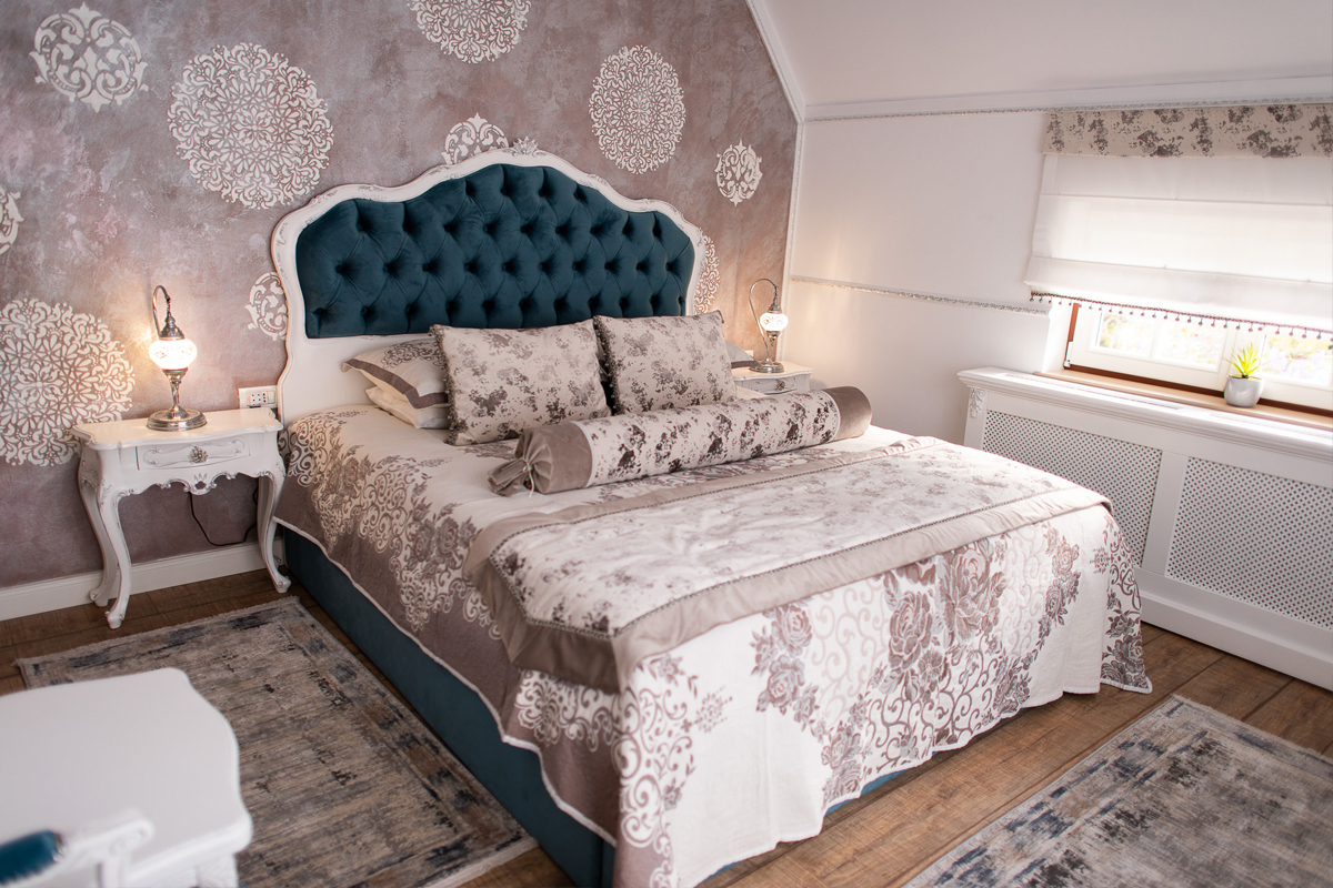 Camera dubla ce intruchipeaza gustul impecabil, luxul si eleganta. Mobilierul sculptat si decoratiunile clasice imbina armonia si relaxarea pentru un sejur in Vila Maresal. >>>