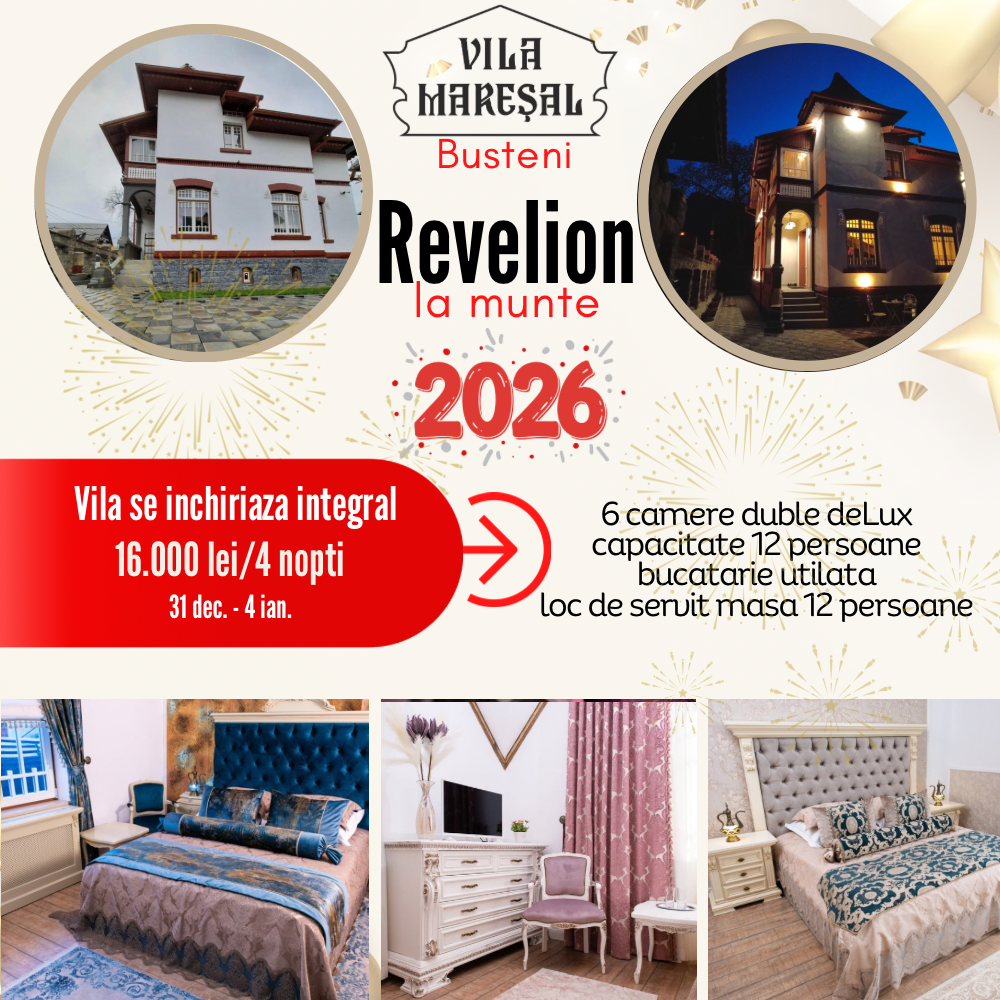 Pentru cei care doresc sa petreaca in liniste Revelionul cu familia sau cei apropiati, Vila Maresal este optiunea perfecta! Aproape de partia Kalinderu si de centrul statiunii, camere duble deLux ce intruchipeaza gustul impecabil, luxul si eleganta…intr-un cuvant…echilibrul perfect intre frumusete si confort!